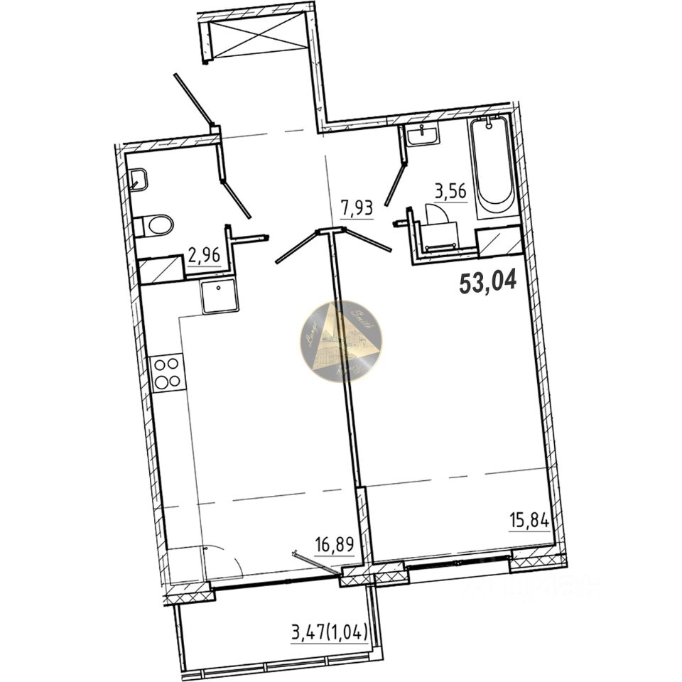 Квартира находится на 5/7 этаже. Общая площадь квартиры 53.04 м2.