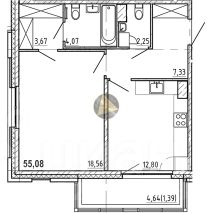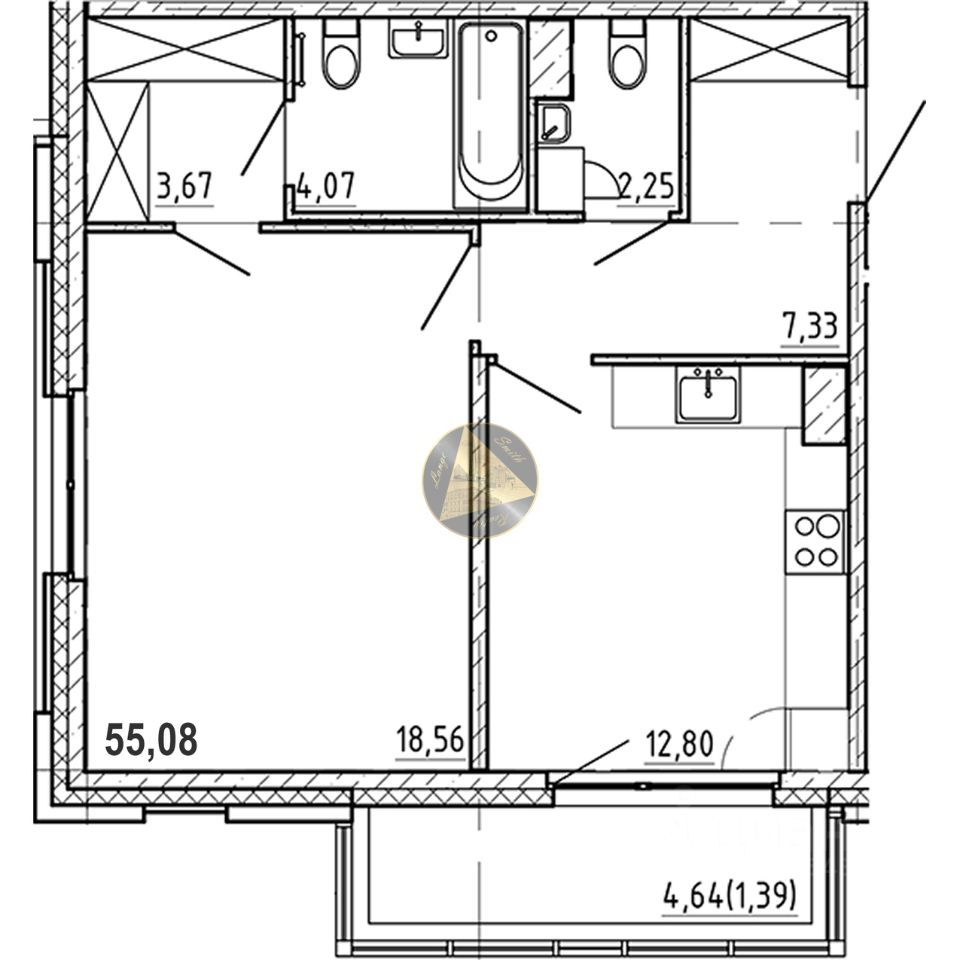Квартира находится на 4/9 этаже. Общая площадь квартиры 55.08 м2.