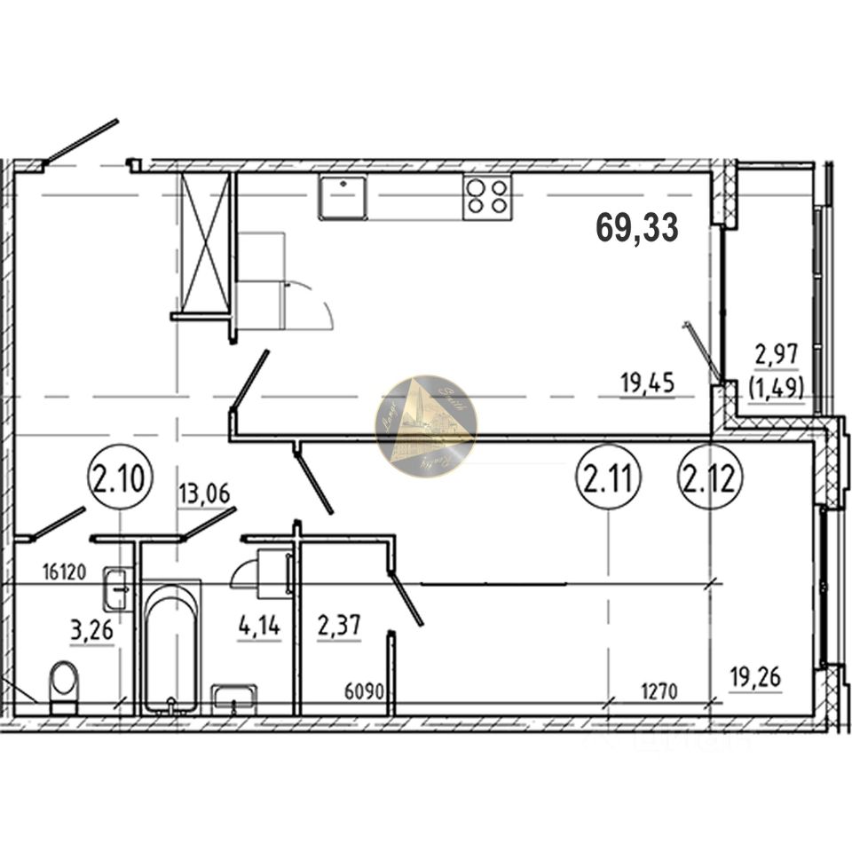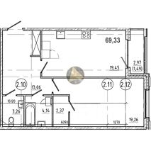 Квартира находится на 3/7 этаже. Общая площадь квартиры 69.33 м2.