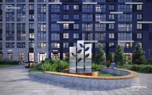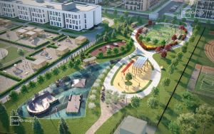 • Места притяжения: фонтан "Бионика", спортивный кластер со скейт-парком, фотозоны с арт-объектами