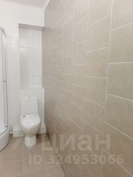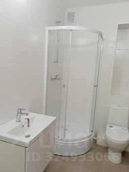 В совмещенном санузле установлена душевая кабина, электрический полотенцесушитель с 4 режимами, раковина с тумбой. Стены и пол выложены керамической плиткой.