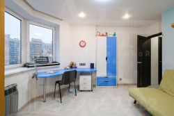 Общая площадь 74,8кв. м., три изолированные комнаты. Кухня правильной формы (11,2кв.м.), есть дизайн проект, по которому планировали объединить кухню и комнату. В прихожей вместительный шкаф + дополнительно 3,3 кв.м закрытой гардеробной, 2 санузла один из них с ванной, где установлен бойлер (в летнее время очень нужная вещь), другой санузел гостевой туалет. В квартире бОльшая часть произведён ремонт (есть дизайн проект для завершения при необходимости). В спальне утеплена лоджия, убран оконный блок (батарея не вынесена, стойка не убрана, при желании блок можно поставить обратно).