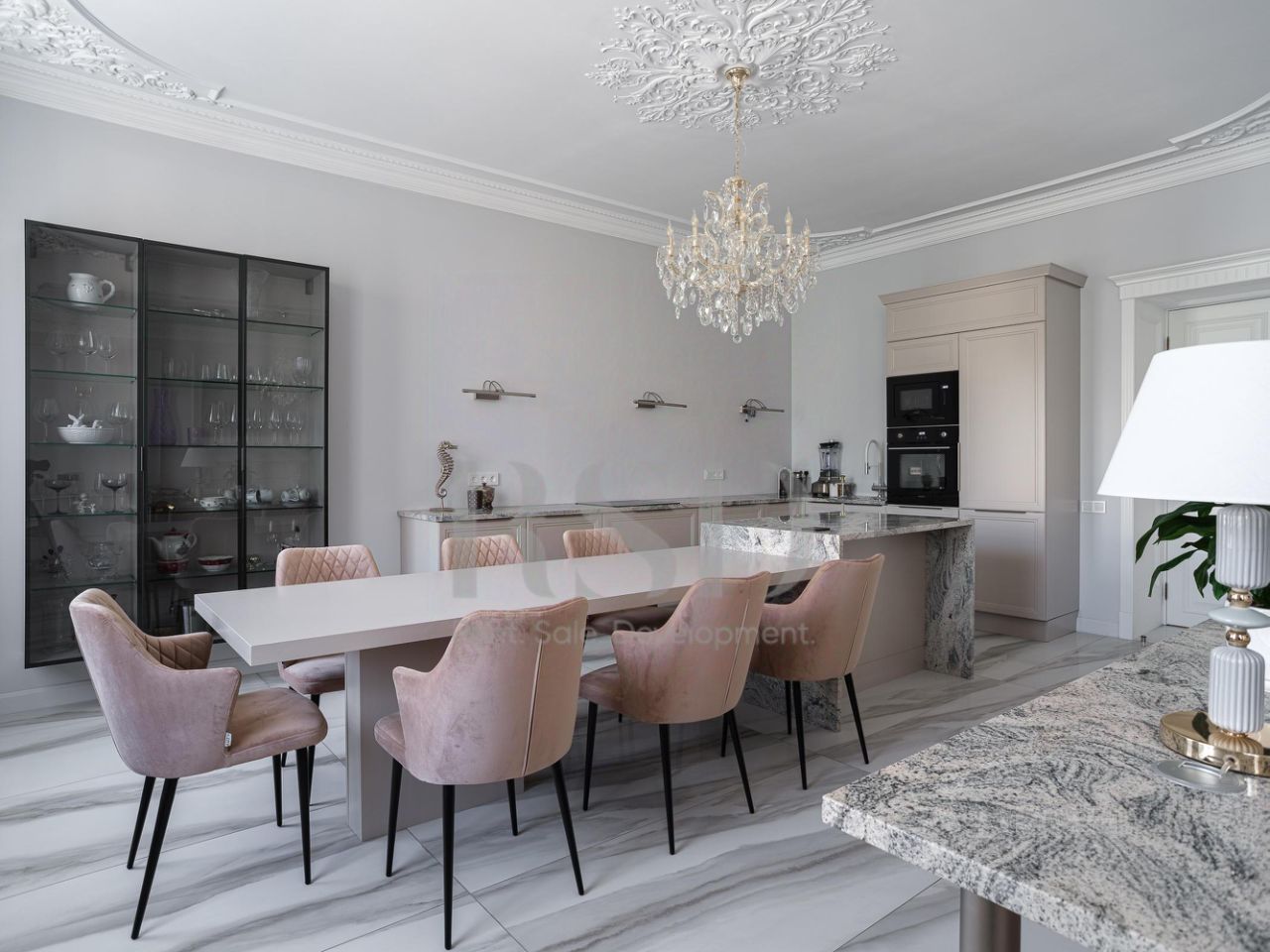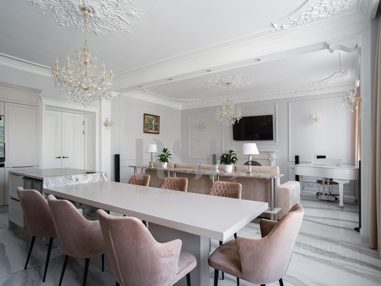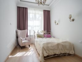 Квартира расположена на 4 этаже с видом как на улицу, так и во двор. Большая кухня гостиная 54,3м2, две спальни 27,4 м2 и 12м2, два санузла, вместительные гардеробные. В 2022 году был проведен полный капитальный ремонт с заменой всех инженерных коммуникаций, стен, перекрытий, окон и электрического ввода до счетчика. Только самые высококачественные и проверенные временем материалы были использованы для отделки. Важно отметить, что на гипсовую лепнину было потрачено порядка миллиона рублей, подчеркивая роскошь и элегантность каждой детали.