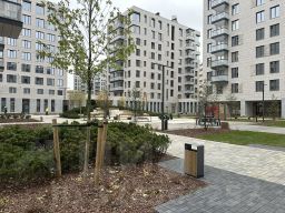 Рельефная территория разделена на несколько функциональных зон, где предусмотрены детские площадки с безопасной канатной дорогой и мягким конструктором, зона для активных игр и занятий спортом, места для отдыха взрослых — со столами для настольных игр и амфитеатром. Рядом с комплексом расположится детский сад с бассейном.