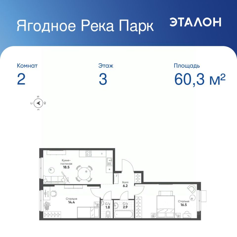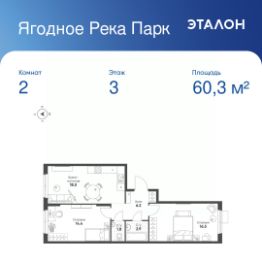 Общая площадь квартиры — 60.3 кв. м, этаж 3 из 12.