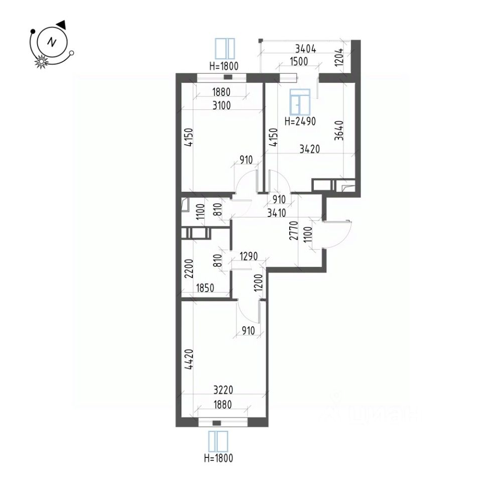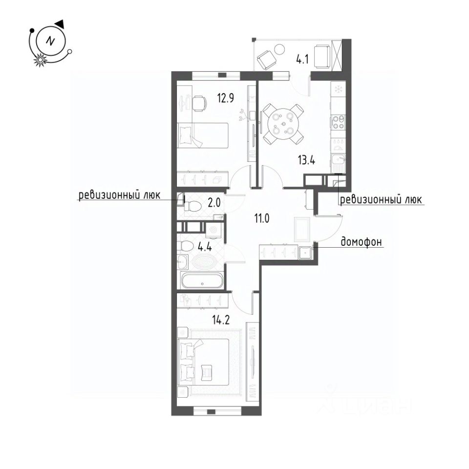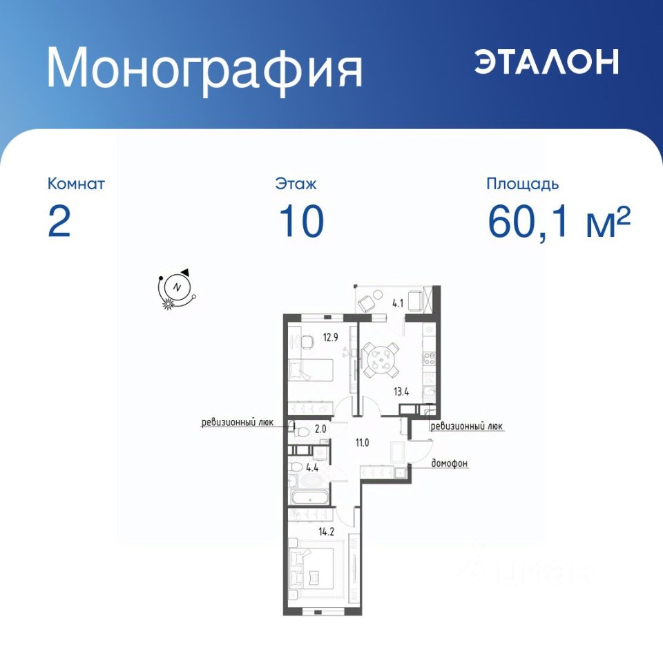 Общая площадь квартиры — 60.1 кв. м, этаж 10 из 12.