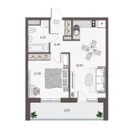 -площадь кухни-гостиной 19 м2 (выделенная ниша под рабочую зону, удобное зонирование);