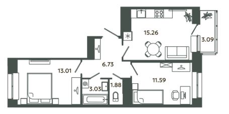 Общая площадь52,96 м²