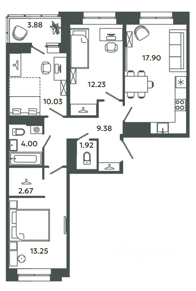 Общая площадь73,32 м²