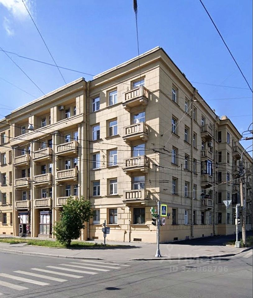 Предлагаем приобрести светлую комнату правильной квадратной формы, 15 кв. м, в доме сталинской постройки в Московском районе. Комната находится на втором этаже пятиэтажного здания. Первый этаж занят коммерческими помещениями.