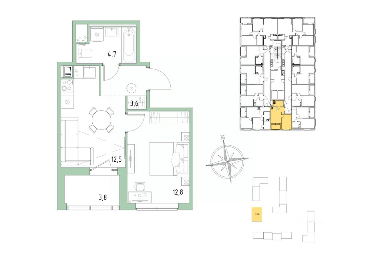 12,8 м²
