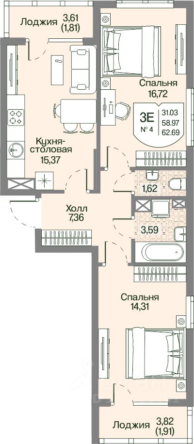 Общая площадь62,69 м²