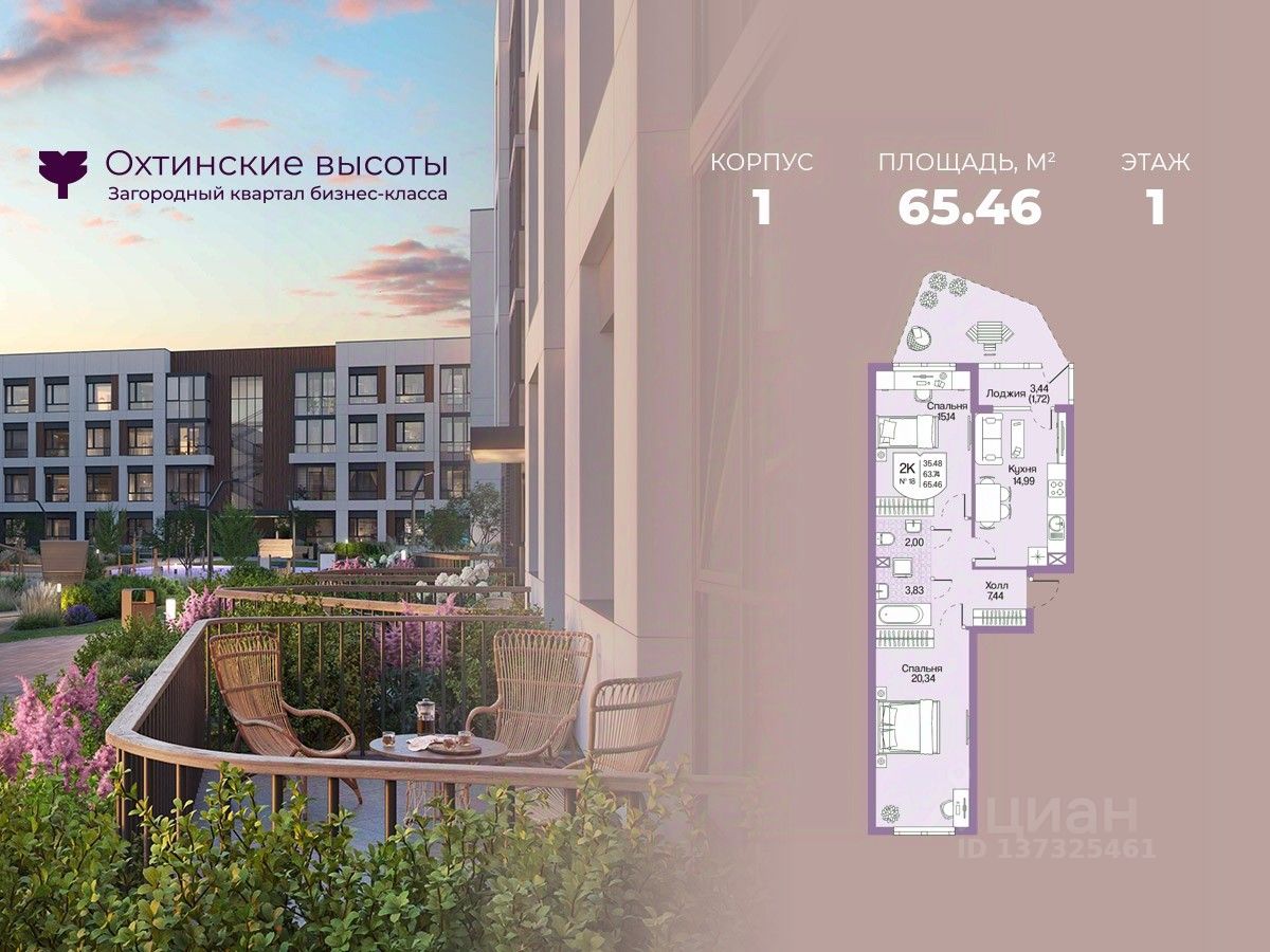 Загородный квартал бизнес-класса "Охтинские высоты" - это ваш новый образ жизни, в котором сбалансированы преимущества проживания на природе в сочетании с городскими сервисами. Квартал расположен рядом со всесезонным курортом Охта Парк, всего в 10 минутах от КАДа. В окружении расположены премиальные конные клубы, теннисные корты, банное пространство "Камыши". Также к услугам жителей легендарный лесной каток, теплый бассейн на открытом воздухе, SPA, рестораны и энотека Охта Парка, куда от квартала будет запущен шаттл только для жителей "Охтинских высот". Вокруг квартал рекреационная лесная зона невероятной красоты, буквально кислородная фабрика 24/7. Ко въезду ведет новая автомобильная дорога, специально построенная для комфорта будущих жителей "Охтинских высот". В первой очереди квартала уже реализуется детский сад на 120 мест. Запроектированы коммерческие помещения под аптеку, супермаркет, пункты выдачи заказов, кофейни и велнесс. Территория квартала безбарьерная. В каждом дворе будет выполнено уникальное благоустройство по авторскому проекту с детскими и спортивными площадками, местами для отдыха и активностей. Концепция озеленения выстроена по принципу "живописный двор круглый год". Любителям активного образа жизни особенно понравятся эксплуатируемые кровли с зонами для йоги и солярия, откуда открывается невероятный вид на зеленый лес, раскинувшийся вокруг квартала. Дворы закрытые, без машин. Безопасность жителей обеспечивает система круглосуточного наблюдения и охрана. Входные группы светопрозрачные, с увеличенными окнами "от колена". Вход с уровня земли. Жители всегда видят, что происходит во дворе и в парадной. МОПы отделами качественными материалами с фактурой дерева и камня. В каждой парадной современные грузопассажирские лифты, отдельно выделены колясочные и велосипедные. Квартал малоэтажный, всего 4 этажа. Высота потолков при этом от 3 м и выше. Квартиры спроектированы таким образом, чтобы закрыть потребности в ежедневном комфортном проживании для семей любого состава. В квартирах: • Живописные патио на первых этажах • Зоны для организации хранения • Мастер-спальни • Комнаты правильной формы • Просторные кухни-гостиные с комфортным зонированием • Гардеробные • Дополнительные санузлы • Увеличенные окна 2х2 м • Система управления комфортом в каждой квартире ("Умный дом") • Подготовка под установку кондиционера • Балконы и лоджии Все квартиры сдаются с отделкой white-box и Системой управления комфортом (умный дом). На выбор можно заказать чистовую отделку, которая представлена в двух вариантах.