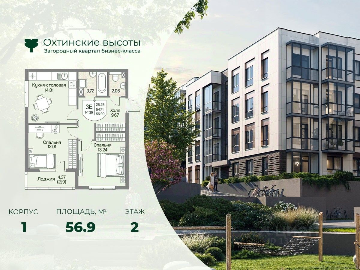 Загородный квартал бизнес-класса "Охтинские высоты" - это ваш новый образ жизни, в котором сбалансированы преимущества проживания на природе в сочетании с городскими сервисами. Квартал расположен рядом со всесезонным курортом Охта Парк, всего в 10 минутах от КАДа. В окружении расположены премиальные конные клубы, теннисные корты, банное пространство "Камыши". Также к услугам жителей легендарный лесной каток, теплый бассейн на открытом воздухе, SPA, рестораны и энотека Охта Парка, куда от квартала будет запущен шаттл только для жителей "Охтинских высот". Вокруг квартал рекреационная лесная зона невероятной красоты, буквально кислородная фабрика 24/7. Ко въезду ведет новая автомобильная дорога, специально построенная для комфорта будущих жителей "Охтинских высот". В первой очереди квартала уже реализуется детский сад на 120 мест. Запроектированы коммерческие помещения под аптеку, супермаркет, пункты выдачи заказов, кофейни и велнесс. Территория квартала безбарьерная. В каждом дворе будет выполнено уникальное благоустройство по авторскому проекту с детскими и спортивными площадками, местами для отдыха и активностей. Концепция озеленения выстроена по принципу "живописный двор круглый год". Любителям активного образа жизни особенно понравятся эксплуатируемые кровли с зонами для йоги и солярия, откуда открывается невероятный вид на зеленый лес, раскинувшийся вокруг квартала. Дворы закрытые, без машин. Безопасность жителей обеспечивает система круглосуточного наблюдения и охрана. Входные группы светопрозрачные, с увеличенными окнами "от колена". Вход с уровня земли. Жители всегда видят, что происходит во дворе и в парадной. МОПы отделами качественными материалами с фактурой дерева и камня. В каждой парадной современные грузопассажирские лифты, отдельно выделены колясочные и велосипедные. Квартал малоэтажный, всего 4 этажа. Высота потолков при этом от 3 м и выше. Квартиры спроектированы таким образом, чтобы закрыть потребности в ежедневном комфортном проживании для семей любого состава. В квартирах: • Живописные патио на первых этажах • Зоны для организации хранения • Мастер-спальни • Комнаты правильной формы • Просторные кухни-гостиные с комфортным зонированием • Гардеробные • Дополнительные санузлы • Увеличенные окна 2х2 м • Система управления комфортом в каждой квартире ("Умный дом") • Подготовка под установку кондиционера • Балконы и лоджии Все квартиры сдаются с отделкой white-box и Системой управления комфортом (умный дом). На выбор можно заказать чистовую отделку, которая представлена в двух вариантах.