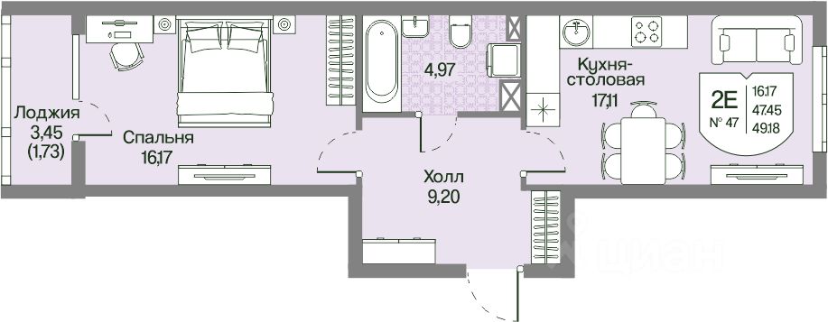 Общая площадь49,18 м²