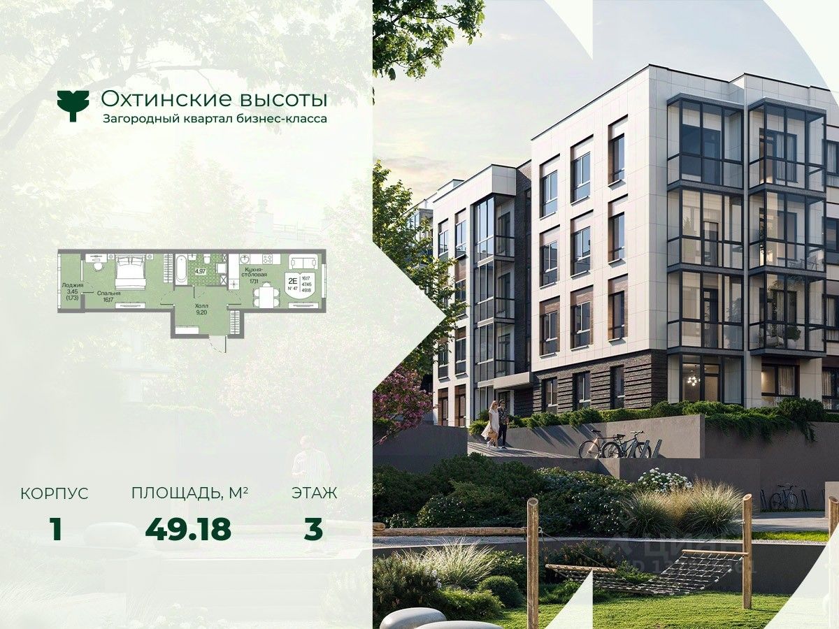 Загородный квартал бизнес-класса "Охтинские высоты" - это ваш новый образ жизни, в котором сбалансированы преимущества проживания на природе в сочетании с городскими сервисами. Квартал расположен рядом со всесезонным курортом Охта Парк, всего в 10 минутах от КАДа. В окружении расположены премиальные конные клубы, теннисные корты, банное пространство "Камыши". Также к услугам жителей легендарный лесной каток, теплый бассейн на открытом воздухе, SPA, рестораны и энотека Охта Парка, куда от квартала будет запущен шаттл только для жителей "Охтинских высот". Вокруг квартал рекреационная лесная зона невероятной красоты, буквально кислородная фабрика 24/7. Ко въезду ведет новая автомобильная дорога, специально построенная для комфорта будущих жителей "Охтинских высот". В первой очереди квартала уже реализуется детский сад на 120 мест. Запроектированы коммерческие помещения под аптеку, супермаркет, пункты выдачи заказов, кофейни и велнесс. Территория квартала безбарьерная. В каждом дворе будет выполнено уникальное благоустройство по авторскому проекту с детскими и спортивными площадками, местами для отдыха и активностей. Концепция озеленения выстроена по принципу "живописный двор круглый год". Любителям активного образа жизни особенно понравятся эксплуатируемые кровли с зонами для йоги и солярия, откуда открывается невероятный вид на зеленый лес, раскинувшийся вокруг квартала. Дворы закрытые, без машин. Безопасность жителей обеспечивает система круглосуточного наблюдения и охрана. Входные группы светопрозрачные, с увеличенными окнами "от колена". Вход с уровня земли. Жители всегда видят, что происходит во дворе и в парадной. МОПы отделами качественными материалами с фактурой дерева и камня. В каждой парадной современные грузопассажирские лифты, отдельно выделены колясочные и велосипедные. Квартал малоэтажный, всего 4 этажа. Высота потолков при этом от 3 м и выше. Квартиры спроектированы таким образом, чтобы закрыть потребности в ежедневном комфортном проживании для семей любого состава. В квартирах: • Живописные патио на первых этажах • Зоны для организации хранения • Мастер-спальни • Комнаты правильной формы • Просторные кухни-гостиные с комфортным зонированием • Гардеробные • Дополнительные санузлы • Увеличенные окна 2х2 м • Система управления комфортом в каждой квартире ("Умный дом") • Подготовка под установку кондиционера • Балконы и лоджии Все квартиры сдаются с отделкой white-box и Системой управления комфортом (умный дом). На выбор можно заказать чистовую отделку, которая представлена в двух вариантах.