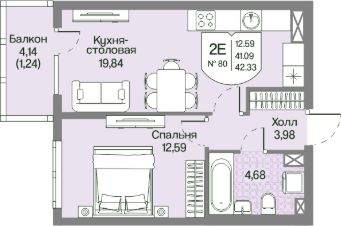 Общая площадь42,33 м²