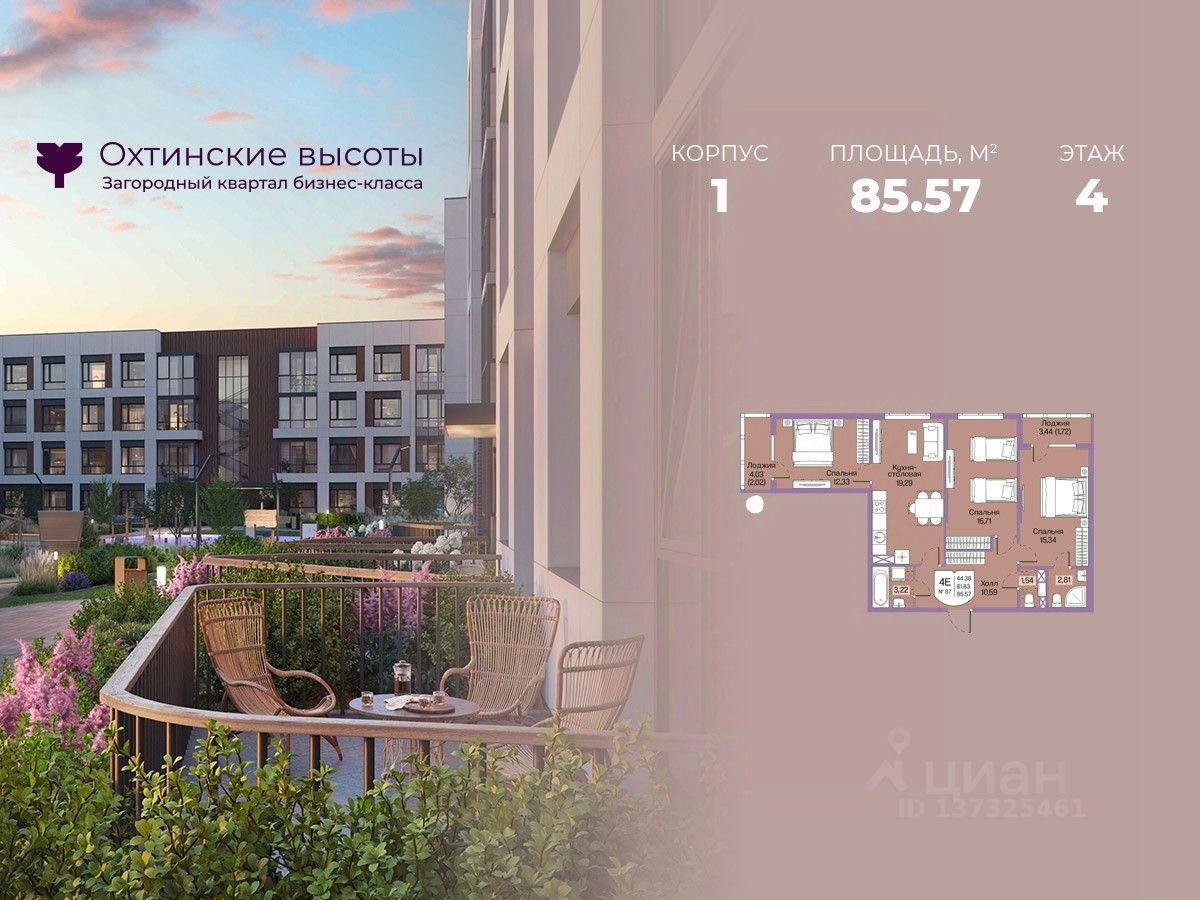 Загородный квартал бизнес-класса "Охтинские высоты" - это ваш новый образ жизни, в котором сбалансированы преимущества проживания на природе в сочетании с городскими сервисами. Квартал расположен рядом со всесезонным курортом Охта Парк, всего в 10 минутах от КАДа. В окружении расположены премиальные конные клубы, теннисные корты, банное пространство "Камыши". Также к услугам жителей легендарный лесной каток, теплый бассейн на открытом воздухе, SPA, рестораны и энотека Охта Парка, куда от квартала будет запущен шаттл только для жителей "Охтинских высот". Вокруг квартал рекреационная лесная зона невероятной красоты, буквально кислородная фабрика 24/7. Ко въезду ведет новая автомобильная дорога, специально построенная для комфорта будущих жителей "Охтинских высот". В первой очереди квартала уже реализуется детский сад на 120 мест. Запроектированы коммерческие помещения под аптеку, супермаркет, пункты выдачи заказов, кофейни и велнесс. Территория квартала безбарьерная. В каждом дворе будет выполнено уникальное благоустройство по авторскому проекту с детскими и спортивными площадками, местами для отдыха и активностей. Концепция озеленения выстроена по принципу "живописный двор круглый год". Любителям активного образа жизни особенно понравятся эксплуатируемые кровли с зонами для йоги и солярия, откуда открывается невероятный вид на зеленый лес, раскинувшийся вокруг квартала. Дворы закрытые, без машин. Безопасность жителей обеспечивает система круглосуточного наблюдения и охрана. Входные группы светопрозрачные, с увеличенными окнами "от колена". Вход с уровня земли. Жители всегда видят, что происходит во дворе и в парадной. МОПы отделами качественными материалами с фактурой дерева и камня. В каждой парадной современные грузопассажирские лифты, отдельно выделены колясочные и велосипедные. Квартал малоэтажный, всего 4 этажа. Высота потолков при этом от 3 м и выше. Квартиры спроектированы таким образом, чтобы закрыть потребности в ежедневном комфортном проживании для семей любого состава. В квартирах: • Живописные патио на первых этажах • Зоны для организации хранения • Мастер-спальни • Комнаты правильной формы • Просторные кухни-гостиные с комфортным зонированием • Гардеробные • Дополнительные санузлы • Увеличенные окна 2х2 м • Система управления комфортом в каждой квартире ("Умный дом") • Подготовка под установку кондиционера • Балконы и лоджии Все квартиры сдаются с отделкой white-box и Системой управления комфортом (умный дом). На выбор можно заказать чистовую отделку, которая представлена в двух вариантах.