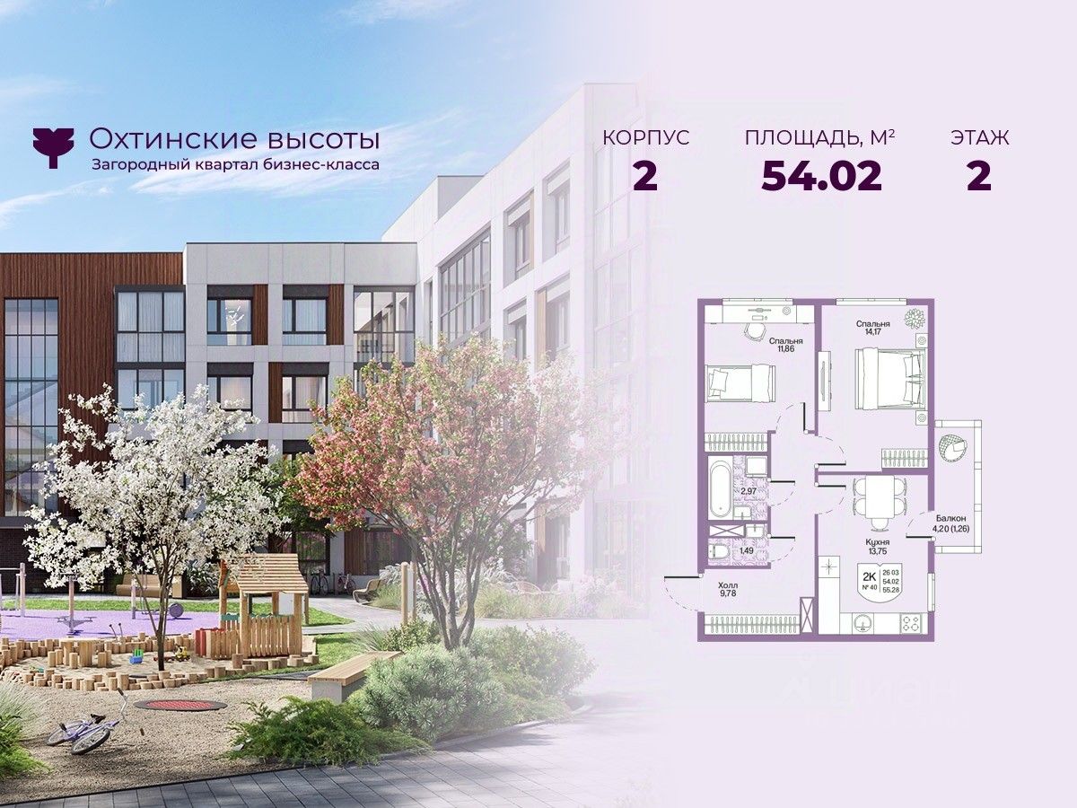 Загородный квартал бизнес-класса "Охтинские высоты" - это ваш новый образ жизни, в котором сбалансированы преимущества проживания на природе в сочетании с городскими сервисами. Квартал расположен рядом со всесезонным курортом Охта Парк, всего в 10 минутах от КАДа. В окружении расположены премиальные конные клубы, теннисные корты, банное пространство "Камыши". Также к услугам жителей легендарный лесной каток, теплый бассейн на открытом воздухе, SPA, рестораны и энотека Охта Парка, куда от квартала будет запущен шаттл только для жителей "Охтинских высот". Вокруг квартал рекреационная лесная зона невероятной красоты, буквально кислородная фабрика 24/7. Ко въезду ведет новая автомобильная дорога, специально построенная для комфорта будущих жителей "Охтинских высот". В первой очереди квартала уже реализуется детский сад на 120 мест. Запроектированы коммерческие помещения под аптеку, супермаркет, пункты выдачи заказов, кофейни и велнесс. Территория квартала безбарьерная. В каждом дворе будет выполнено уникальное благоустройство по авторскому проекту с детскими и спортивными площадками, местами для отдыха и активностей. Концепция озеленения выстроена по принципу "живописный двор круглый год". Любителям активного образа жизни особенно понравятся эксплуатируемые кровли с зонами для йоги и солярия, откуда открывается невероятный вид на зеленый лес, раскинувшийся вокруг квартала. Дворы закрытые, без машин. Безопасность жителей обеспечивает система круглосуточного наблюдения и охрана. Входные группы светопрозрачные, с увеличенными окнами "от колена". Вход с уровня земли. Жители всегда видят, что происходит во дворе и в парадной. МОПы отделами качественными материалами с фактурой дерева и камня. В каждой парадной современные грузопассажирские лифты, отдельно выделены колясочные и велосипедные. Квартал малоэтажный, всего 4 этажа. Высота потолков при этом от 3 м и выше. Квартиры спроектированы таким образом, чтобы закрыть потребности в ежедневном комфортном проживании для семей любого состава. В квартирах: • Живописные патио на первых этажах • Зоны для организации хранения • Мастер-спальни • Комнаты правильной формы • Просторные кухни-гостиные с комфортным зонированием • Гардеробные • Дополнительные санузлы • Увеличенные окна 2х2 м • Система управления комфортом в каждой квартире ("Умный дом") • Подготовка под установку кондиционера • Балконы и лоджии Все квартиры сдаются с отделкой white-box и Системой управления комфортом (умный дом). На выбор можно заказать чистовую отделку, которая представлена в двух вариантах.
