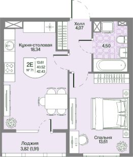 Общая площадь40,52 м²