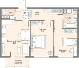 Общая площадь57,44 м²