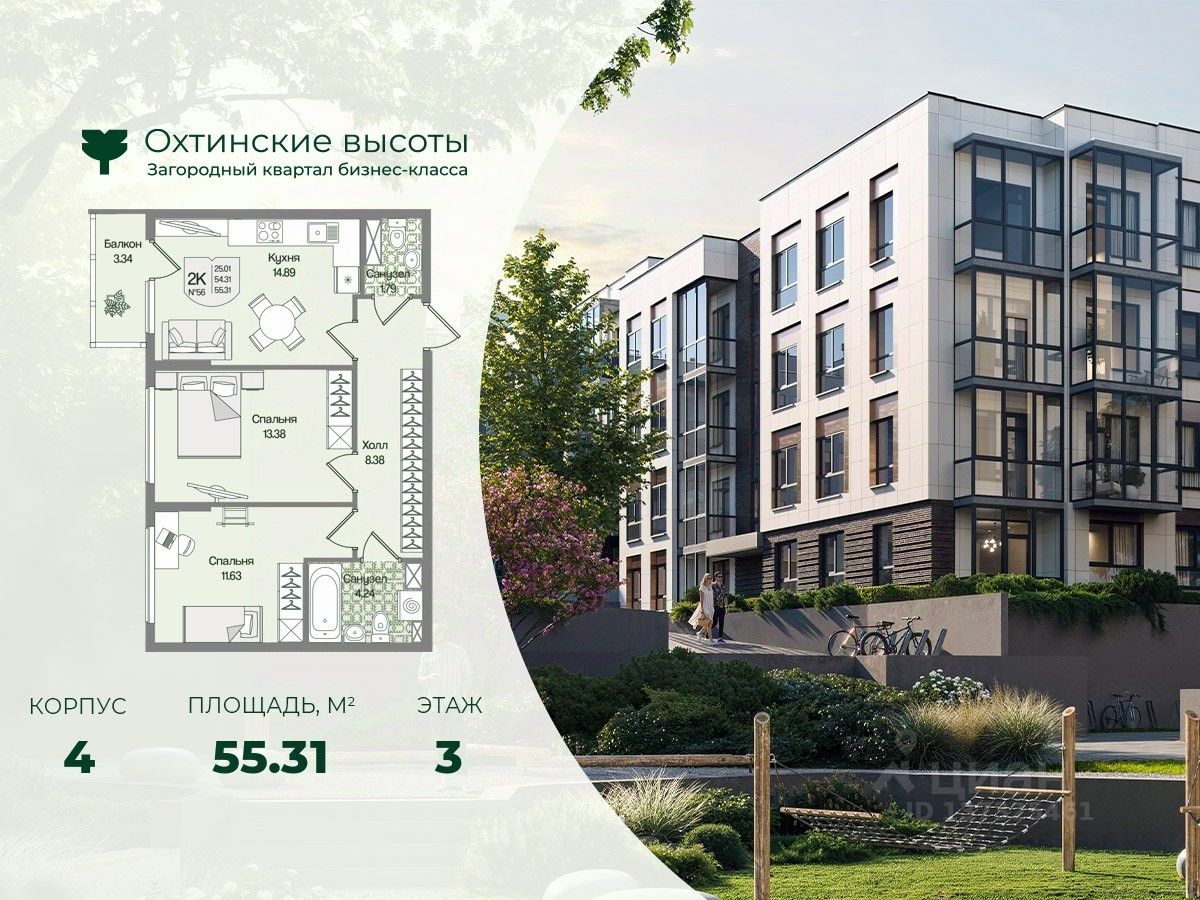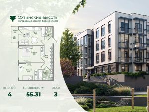 Загородный квартал бизнес-класса "Охтинские высоты" - это ваш новый образ жизни, в котором сбалансированы преимущества проживания на природе в сочетании с городскими сервисами. Квартал расположен рядом со всесезонным курортом Охта Парк, всего в 10 минутах от КАДа. В окружении расположены премиальные конные клубы, теннисные корты, банное пространство "Камыши". Также к услугам жителей легендарный лесной каток, теплый бассейн на открытом воздухе, SPA, рестораны и энотека Охта Парка, куда от квартала будет запущен шаттл только для жителей "Охтинских высот". Вокруг квартал рекреационная лесная зона невероятной красоты, буквально кислородная фабрика 24/7. Ко въезду ведет новая автомобильная дорога, специально построенная для комфорта будущих жителей "Охтинских высот". В первой очереди квартала уже реализуется детский сад на 120 мест. Запроектированы коммерческие помещения под аптеку, супермаркет, пункты выдачи заказов, кофейни и велнесс. Территория квартала безбарьерная. В каждом дворе будет выполнено уникальное благоустройство по авторскому проекту с детскими и спортивными площадками, местами для отдыха и активностей. Концепция озеленения выстроена по принципу "живописный двор круглый год". Любителям активного образа жизни особенно понравятся эксплуатируемые кровли с зонами для йоги и солярия, откуда открывается невероятный вид на зеленый лес, раскинувшийся вокруг квартала. Дворы закрытые, без машин. Безопасность жителей обеспечивает система круглосуточного наблюдения и охрана. Входные группы светопрозрачные, с увеличенными окнами "от колена". Вход с уровня земли. Жители всегда видят, что происходит во дворе и в парадной. МОПы отделами качественными материалами с фактурой дерева и камня. В каждой парадной современные грузопассажирские лифты, отдельно выделены колясочные и велосипедные. Квартал малоэтажный, всего 4 этажа. Высота потолков при этом от 3 м и выше. Квартиры спроектированы таким образом, чтобы закрыть потребности в ежедневном комфортном проживании для семей любого состава. В квартирах: • Живописные патио на первых этажах • Зоны для организации хранения • Мастер-спальни • Комнаты правильной формы • Просторные кухни-гостиные с комфортным зонированием • Гардеробные • Дополнительные санузлы • Увеличенные окна 2х2 м • Система управления комфортом в каждой квартире ("Умный дом") • Подготовка под установку кондиционера • Балконы и лоджии Все квартиры сдаются с отделкой white-box и Системой управления комфортом (умный дом). На выбор можно заказать чистовую отделку, которая представлена в двух вариантах.