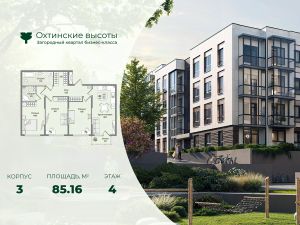Загородный квартал бизнес-класса "Охтинские высоты" - это ваш новый образ жизни, в котором сбалансированы преимущества проживания на природе в сочетании с городскими сервисами. Квартал расположен рядом со всесезонным курортом Охта Парк, всего в 10 минутах от КАДа. В окружении расположены премиальные конные клубы, теннисные корты, банное пространство "Камыши". Также к услугам жителей легендарный лесной каток, теплый бассейн на открытом воздухе, SPA, рестораны и энотека Охта Парка, куда от квартала будет запущен шаттл только для жителей "Охтинских высот". Вокруг квартал рекреационная лесная зона невероятной красоты, буквально кислородная фабрика 24/7. Ко въезду ведет новая автомобильная дорога, специально построенная для комфорта будущих жителей "Охтинских высот". В первой очереди квартала уже реализуется детский сад на 120 мест. Запроектированы коммерческие помещения под аптеку, супермаркет, пункты выдачи заказов, кофейни и велнесс. Территория квартала безбарьерная. В каждом дворе будет выполнено уникальное благоустройство по авторскому проекту с детскими и спортивными площадками, местами для отдыха и активностей. Концепция озеленения выстроена по принципу "живописный двор круглый год". Любителям активного образа жизни особенно понравятся эксплуатируемые кровли с зонами для йоги и солярия, откуда открывается невероятный вид на зеленый лес, раскинувшийся вокруг квартала. Дворы закрытые, без машин. Безопасность жителей обеспечивает система круглосуточного наблюдения и охрана. Входные группы светопрозрачные, с увеличенными окнами "от колена". Вход с уровня земли. Жители всегда видят, что происходит во дворе и в парадной. МОПы отделами качественными материалами с фактурой дерева и камня. В каждой парадной современные грузопассажирские лифты, отдельно выделены колясочные и велосипедные. Квартал малоэтажный, всего 4 этажа. Высота потолков при этом от 3 м и выше. Квартиры спроектированы таким образом, чтобы закрыть потребности в ежедневном комфортном проживании для семей любого состава. В квартирах: • Живописные патио на первых этажах • Зоны для организации хранения • Мастер-спальни • Комнаты правильной формы • Просторные кухни-гостиные с комфортным зонированием • Гардеробные • Дополнительные санузлы • Увеличенные окна 2х2 м • Система управления комфортом в каждой квартире ("Умный дом") • Подготовка под установку кондиционера • Балконы и лоджии Все квартиры сдаются с отделкой white-box и Системой управления комфортом (умный дом). На выбор можно заказать чистовую отделку, которая представлена в двух вариантах.
