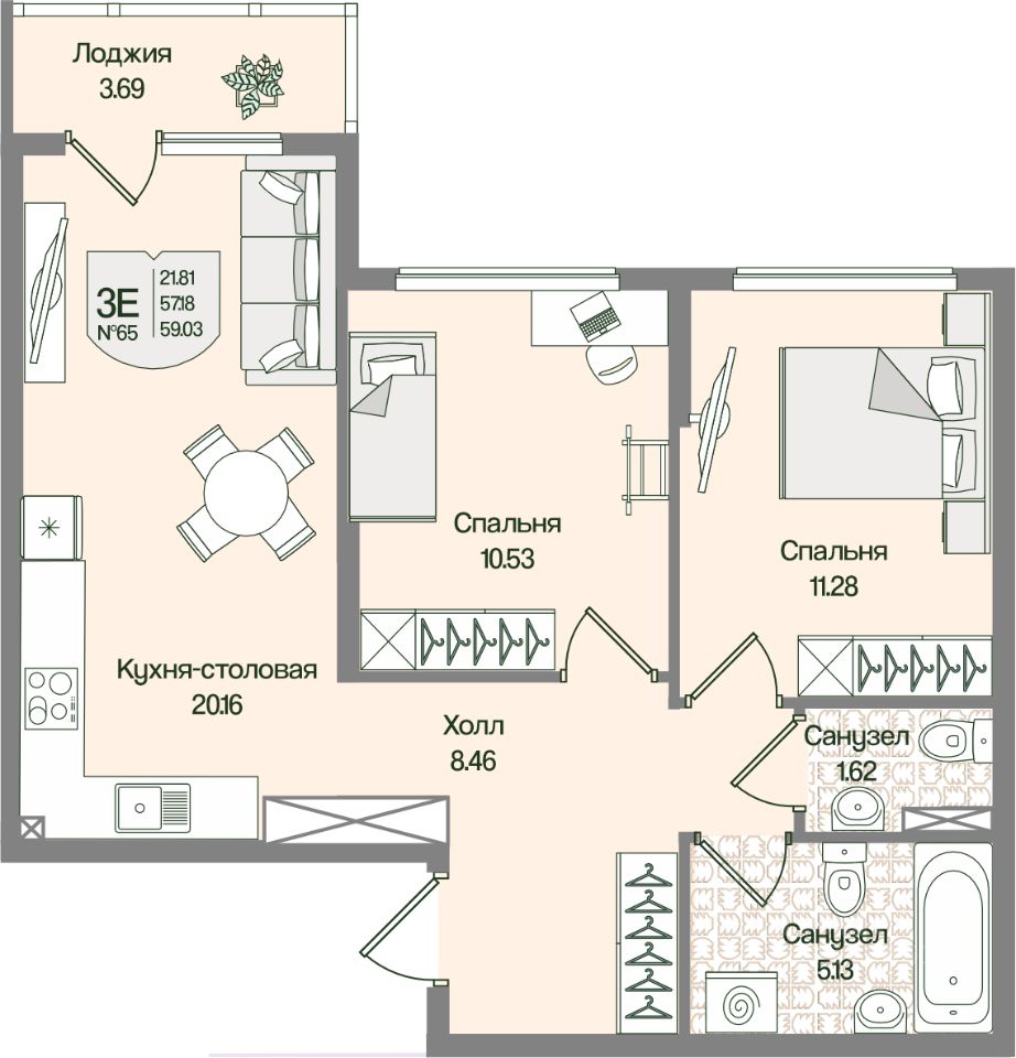 Общая площадь59,02 м²