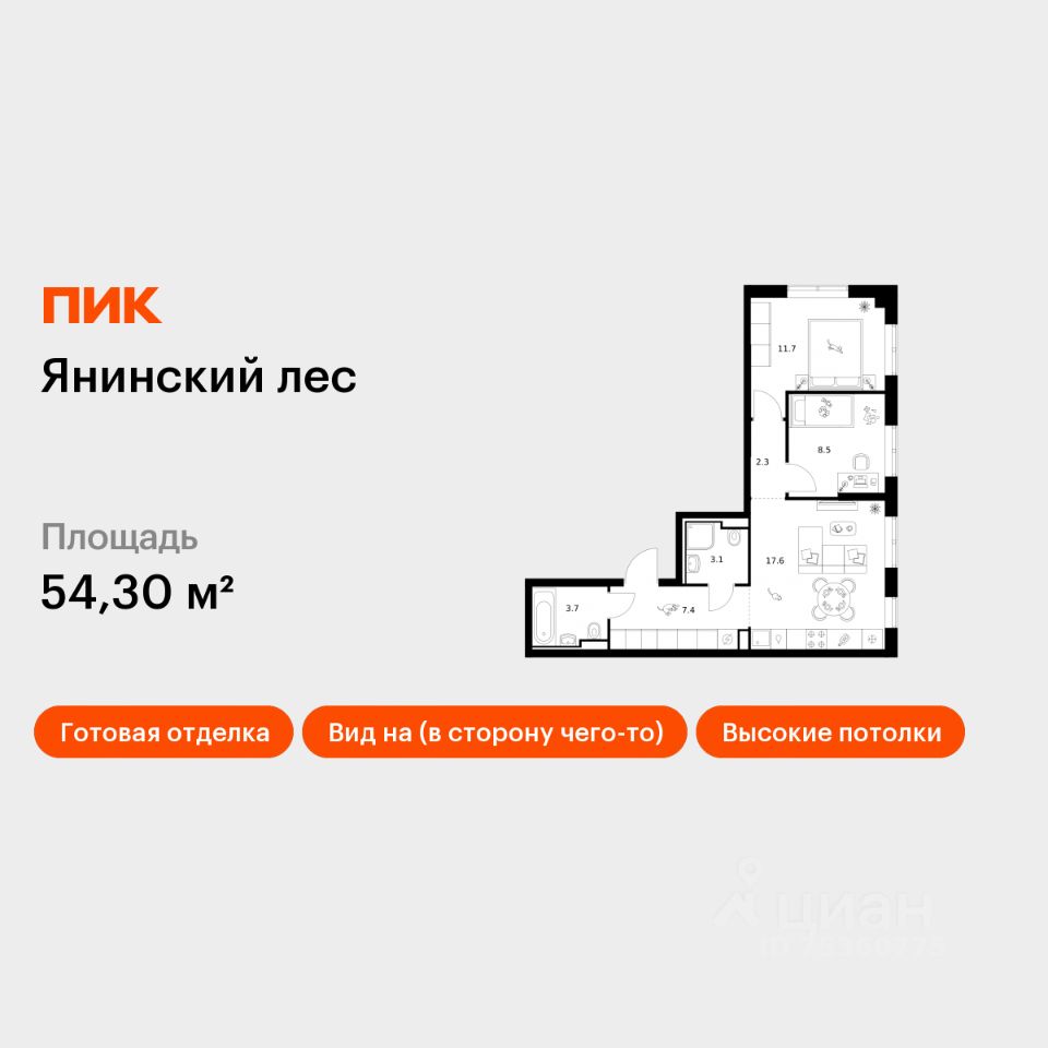 Продаётся 2-комн. квартира площадью 54,3 кв.м на 1 этаже 15 этажного дома (Корпус 4, Секция 1) проекта ПИК Янинский лес. Светлый просторный подъезд на уровне земли, функциональная планировка, большие окна, c отделкой.