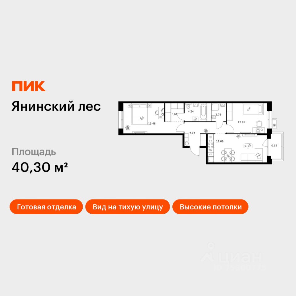 Продаётся 1-комн. квартира площадью 40,3 кв.м на 1 этаже 15 этажного дома (Корпус 4, Секция 1) проекта ПИК Янинский лес. Светлый просторный подъезд на уровне земли, функциональная планировка, большие окна, c отделкой.