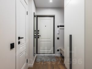 В прихожей размещен высокий шкаф для верхней одежды, банкетка, напротив зеркало в полный рост. Выполнена подготовка под роутер,