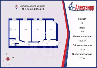 1699255 Продаётся 3-х комнатная квартира в престижном квартале Васильевского острова - угол 18 линии и Большого пр.