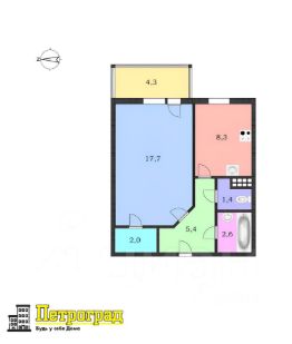 Однокомнатная квартира в Красносельском районе по адресу ул. Летчика Пилютова 44к1. На 7-м этаже 9-этажного дома.