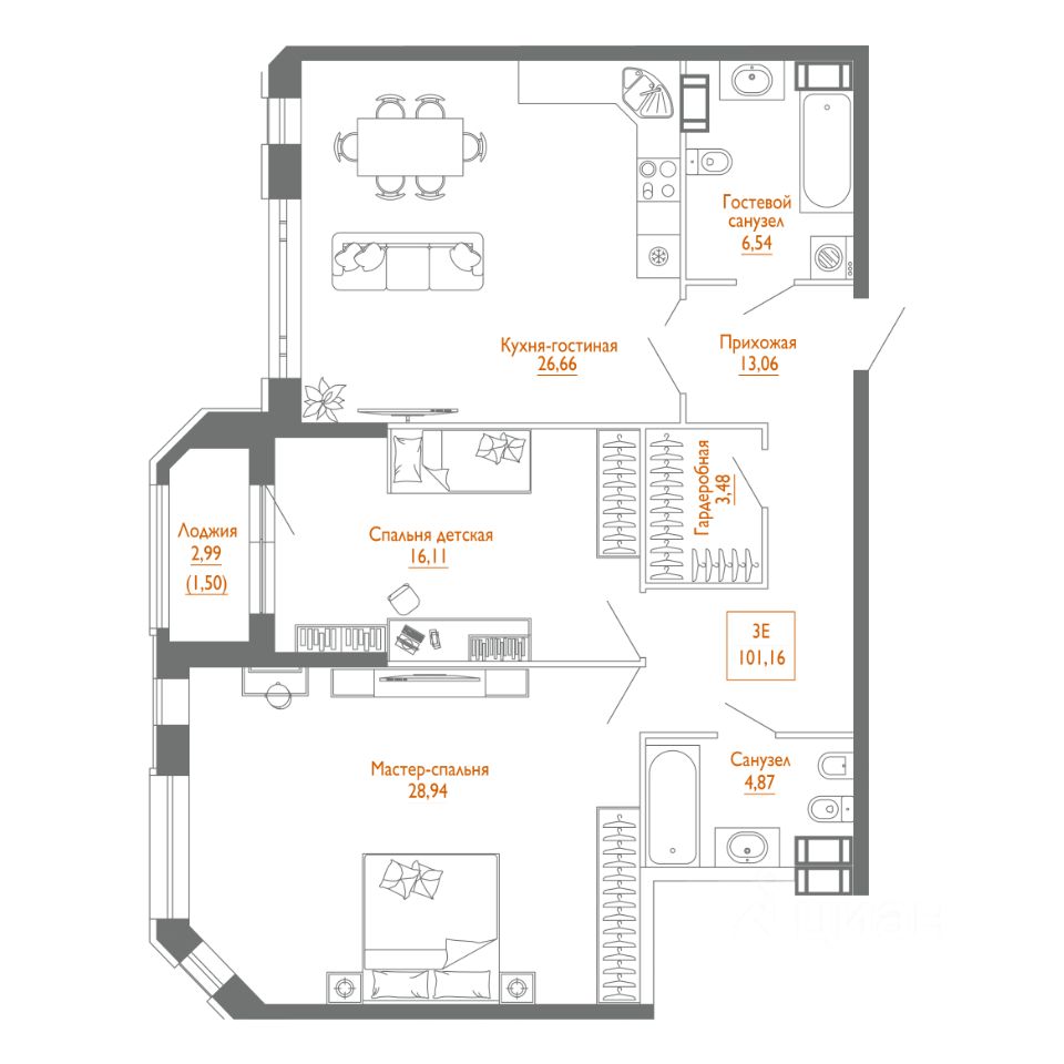 Широкий выбор планировочных решений площадью от 45,5 до 140,6 кв. м позволяет максимально эффективно использовать каждый квадратный метр Вашей квартиры. Среди тщательно проработанных вариантов предусмотрены квартиры с объединенной кухней-гостиной, собственной гардеробной или несколькими санузлами.
