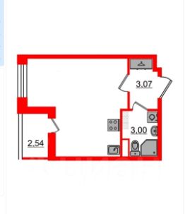Студия с двумя окнами (удобное зонирование).