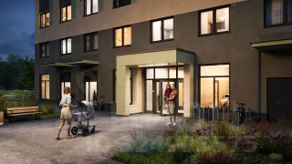 Первые этажи отведены под колясочные, магазины и сервисные службы. Здесь есть всё необходимое для комфортной жизни: магазины, аптеки, парикмахерские, пекарни и кофейни, достаточно спуститься на лифте во двор своего дома. Вокруг квартала пройдет велодорожка.