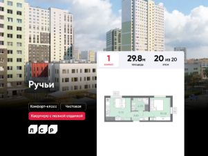 Продаётся 1-комнатная квартира в ЖК "Ручьи" на 20 этаже. Общая площадь составляет 29.80 кв. м. Квартира с чистовой отделкой. Жилой комплекс "Ручьи" располагается по адресу Санкт-Петербург, Красногвардейский.