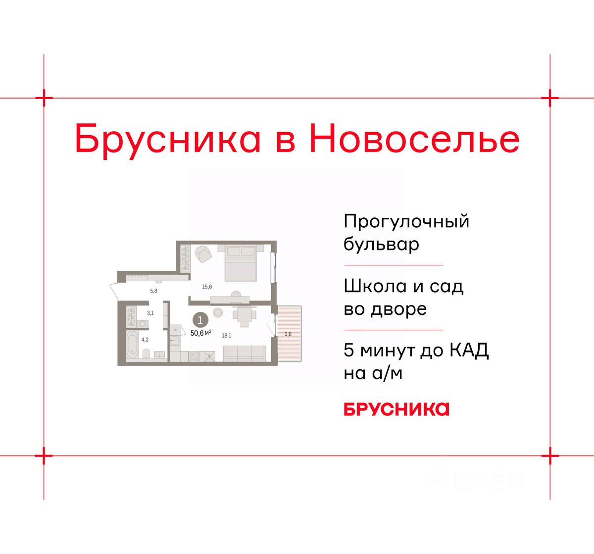 Продается 1-комн. квартира с предчистовой отделкой в ЖК "Брусника в Новоселье" на 6 этаже. Общая площадь: 50.56 кв.м., жилая: 15.6 кв.м., площадь просторной кухни-столовой: 18.1 кв.м. Все окна выходят на одну сторону. В квартире один балкон, один совмещенный санузел. Высота потолков 2.7 м.