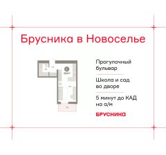 Просторная 1-комн. квартира-студия с предчистовой отделкой в ЖК "Брусника в Новоселье" на 8 этаже. Общая площадь: 32.95 кв.м., площадь гостиной 21.7 кв.м., из которых 5 кв.м. выделено под кухонную зону. Все окна выходят на одну сторону. В квартире один балкон, один совмещенный санузел. Высота потолков 2.7 м.