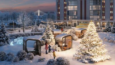 В зелёных и облагороженных дворах есть всё и для семей с детьми: тематические площадки, детский сад и даже школа. Комфортная среда для питомцев - еще одно преимущество "Октябрьской набережной": рядом с домами находится площадка для выгула собак.