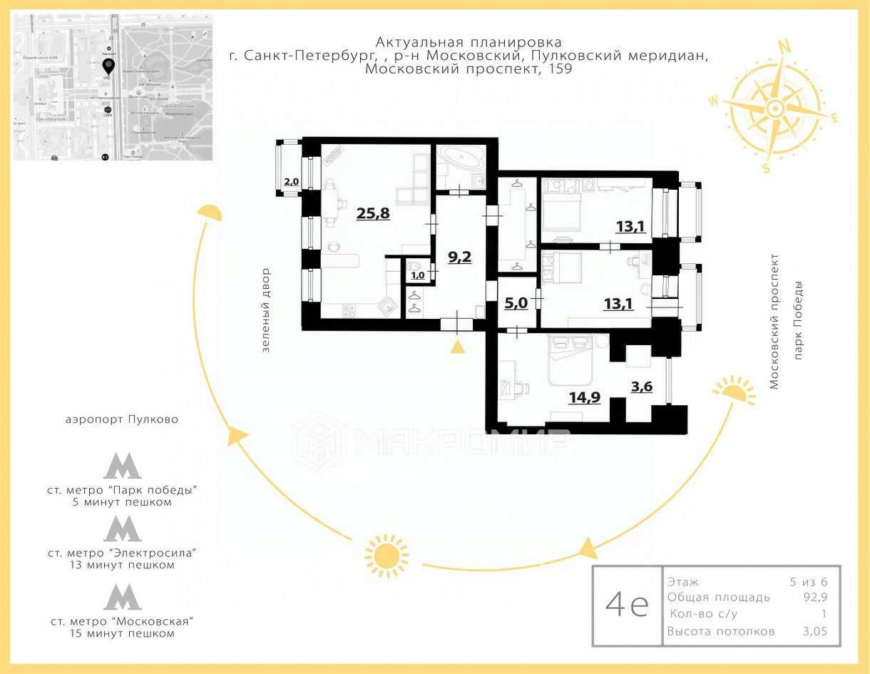 Арт. 127778771 Предлагается 4- х комнатная квартира в престижном Московском районе в сталинском доме, с видом на Парк Победы. Самая лучшая локация: много зеленых зон и мест отдыха, около дома остановка общественного транспорта, метро "Парк Победы" в 5-7 минутах ходьбы, Российская национальная библиотека, образовательные учреждения, крупные торговые сетки и мелкие продуктовые магазины.
