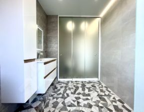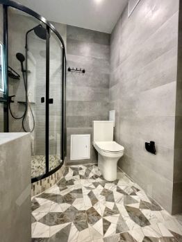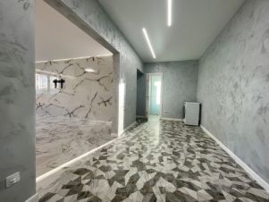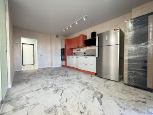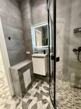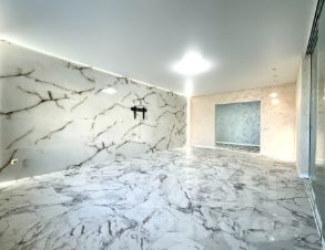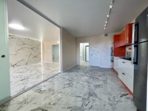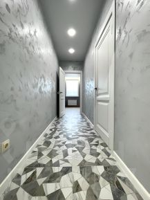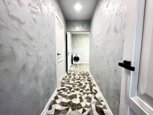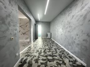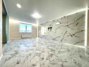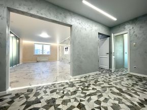 Ремонт выполнен в Скандинавском стиле. Использованы высококачественные материалы: Декоративная штукатурка стен, Стеклянные перегородки, Керамогранит, Деревянный ламинат красивых цветов. Без мебели.
