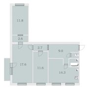 Комнаты правильной формы 17,6+11,8+11,6 кв.м.