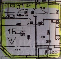 * Общая площадь - 38,1 м, жилая - 17 м, кухня - 9 м.