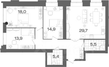 - Трехкомнатная планировка с тремя изолированными комнатами, предлагающая уединение и комфорт для каждого члена семьи.