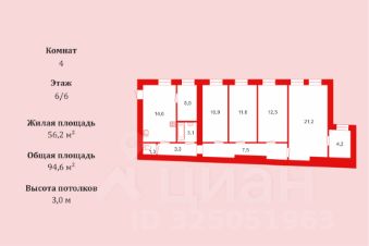 К большой комнате 21,2 кв.м примыкает кладовая (гардеробная или небольшой спорт зал с окном) 4,2 кв.м