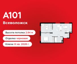 2-комнатная квартира площадью 55.60 в ЖК "А101 Всеволожск" на 6 этаже. Квартира без отделки. Вид из окна на улицу. В квартире 1 санузел. Высота потолков 2.84 м.