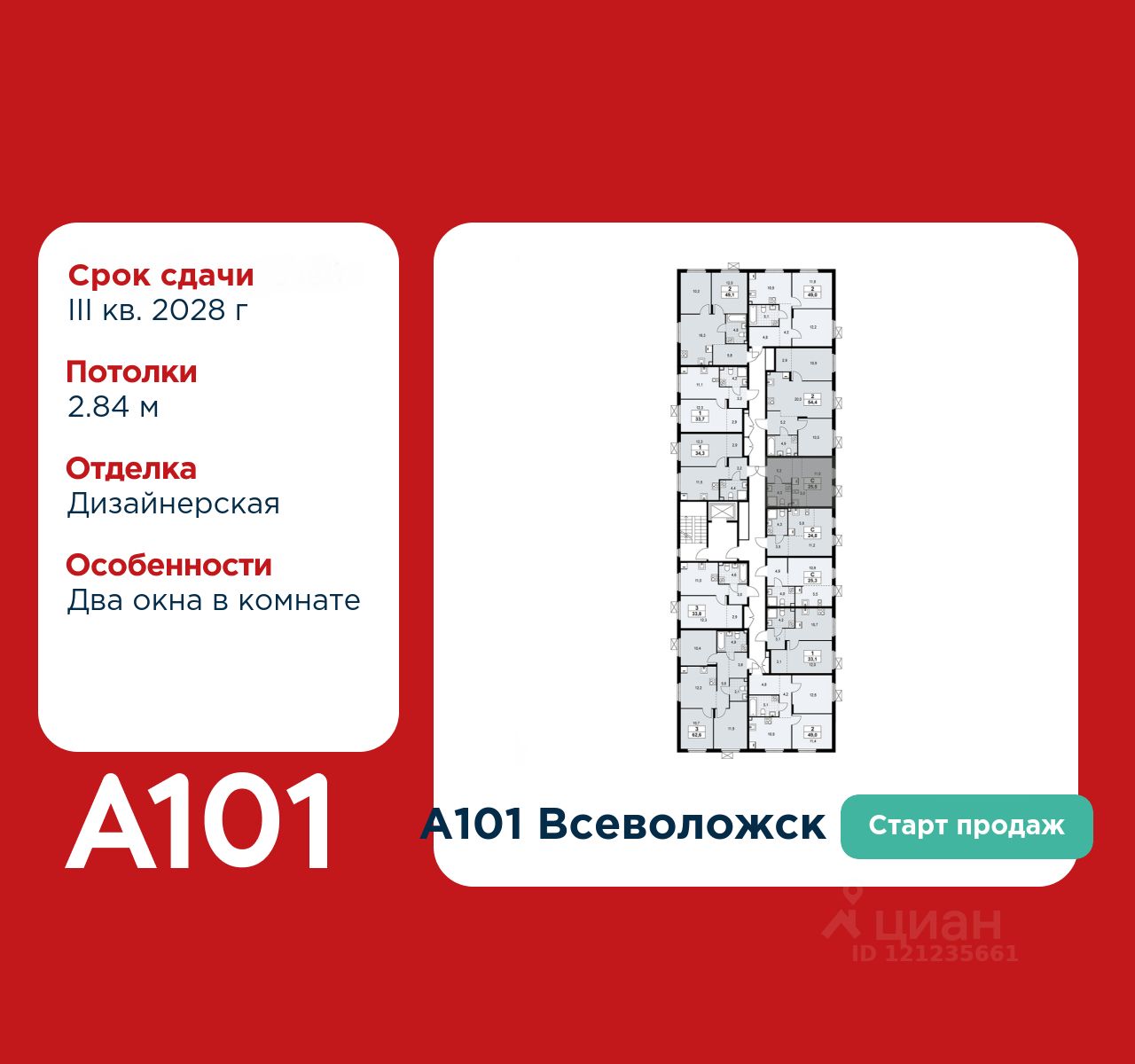 ГК "А101" - крупный инвестиционно-строительный холдинг, занимает 6-е место по объему строительства в России (по данным "Единого ресурса застройщиков" на 2023 год). НКР присвоило ГК "А101" кредитный рейтинг A+.ru, подтверждая его надежность и финансовую устойчивость для завершения строительства ЖК.