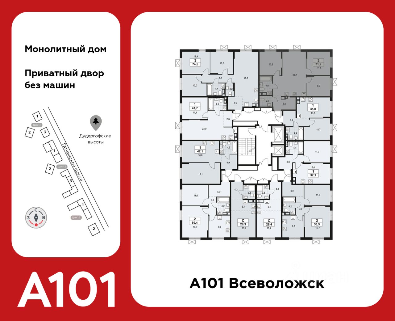 ГК "А101" - крупный инвестиционно-строительный холдинг, занимает 6-е место по объему строительства в России (по данным "Единого ресурса застройщиков" на 2023 год). НКР присвоило ГК "А101" кредитный рейтинг A+.ru, подтверждая его надежность и финансовую устойчивость для завершения строительства ЖК.
