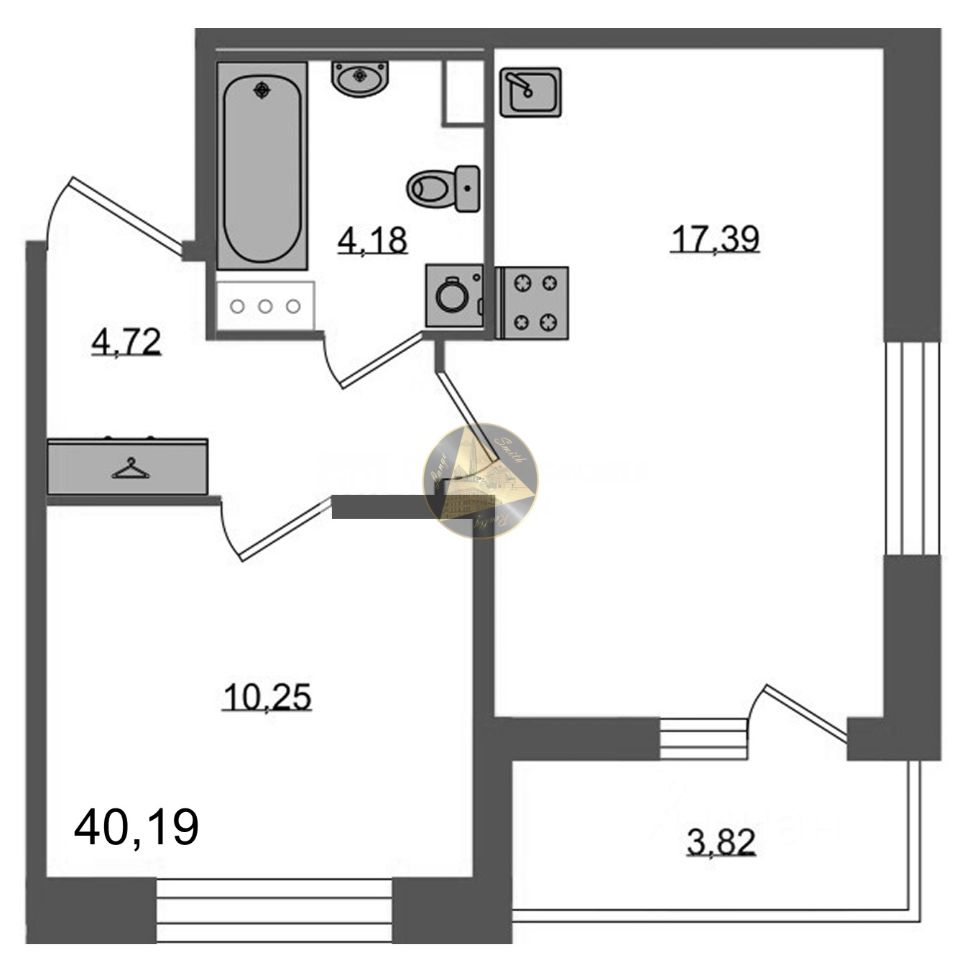 Квартира находится на 10/12 этаже. Общая площадь квартиры 40.19 м2.